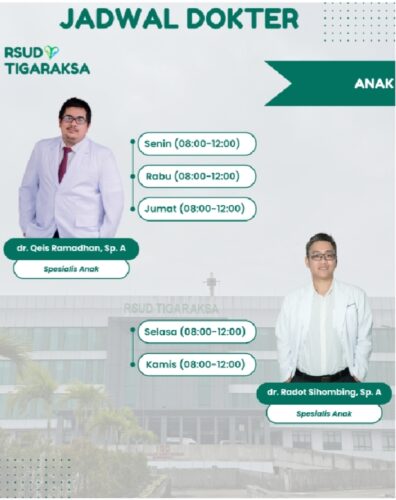 Poliklinik Anak hadir di RSUD Tigaraksa pada jadwal berikut :