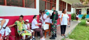 “Terlihat wajah gembira murid-murid ketika mendapat imunisasi membuat suasana haru para petugas kesehatan dan personil pos mosso,
